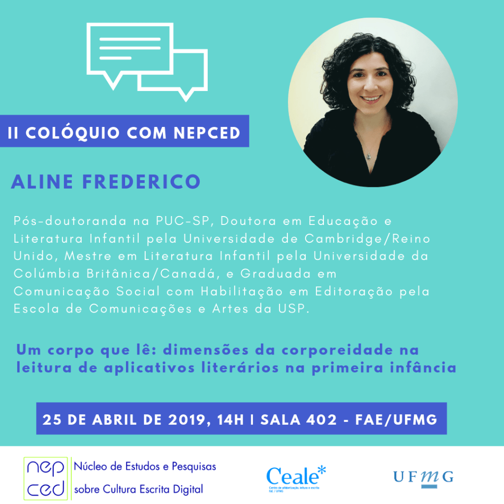 It is a great pleasure to be invited to hold the II Colloquium with NEPCED – Centre of Studies and Research on Digital Written Culture of the Faculty of Education of the Federal University of Minas Gerais (UFMG), Brazil. The group is investigating the intersections between written culture and digital culture and their relationships with education, and is coordinated by scholars Isabel Cristina da Silva Alves Frade and Mônica Daisy Vieira Araújo.